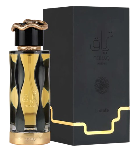 Lattafa Teriaq Intense is a bold and luxurious unisex fragrance that blends rich oriental sweetness with deep amber and spice accords. It opens with a warm, resinous burst of amber, oud, and spicy notes, creating an immediately intense and opulent impression. As it develops, sweet accords like vanilla and caramel emerge, adding a smooth, gourmand richness that balances the darker tones.